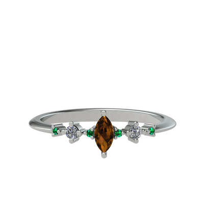 Dumanlı kuvars, beyaz zirkon ve yeşil kuvars 18 ayar beyaz altın yüzük