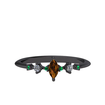 Dumanlı kuvars, beyaz zirkon ve yeşil kuvars 925 ayar siyah rodyum kaplama gümüş yüzük