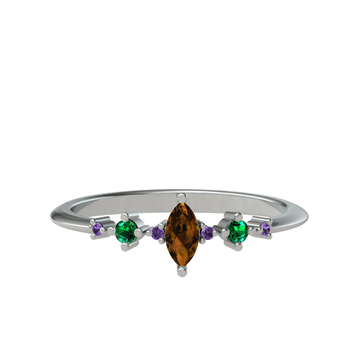 Dumanlı kuvars, yeşil kuvars ve ametist 18 ayar beyaz altın yüzük