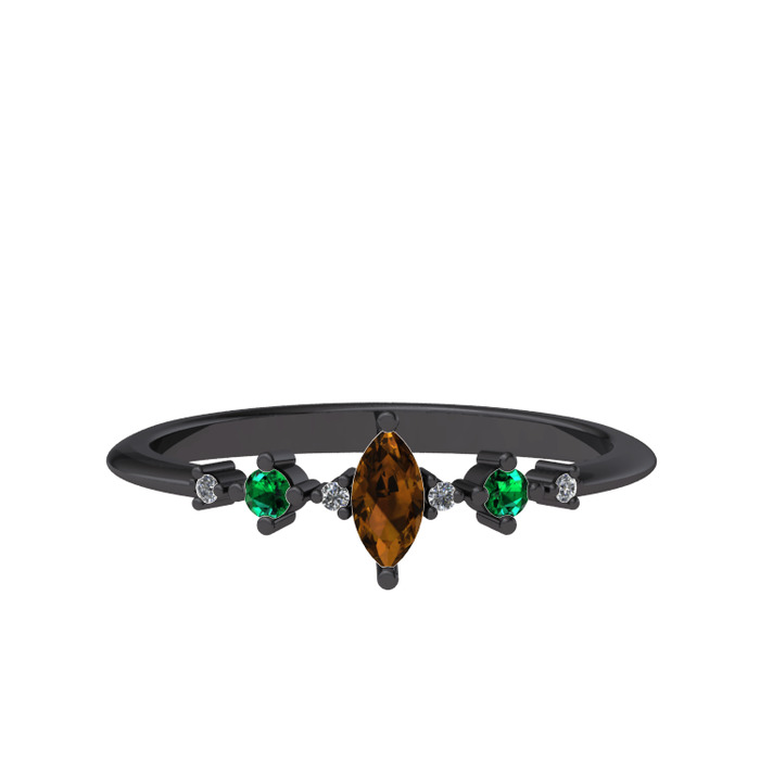 Dumanlı kuvars, yeşil kuvars ve beyaz zirkon 925 ayar siyah rodyum kaplama gümüş yüzük