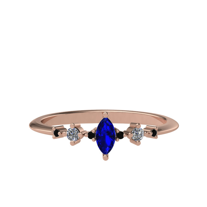 Lab safir, beyaz zirkon ve siyah zirkon 8 ayar rose altın yüzük