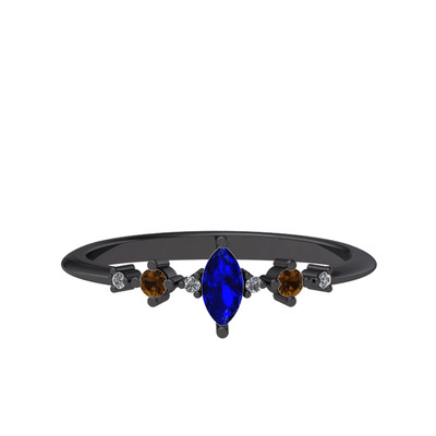 Lab safir, dumanlı kuvars ve beyaz zirkon 925 ayar siyah rodyum kaplama gümüş yüzük
