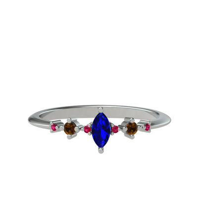 Lab safir, dumanlı kuvars ve rodolit garnet 18 ayar beyaz altın yüzük