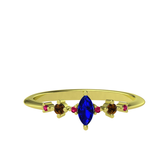 Lab safir, dumanlı kuvars ve rodolit garnet 925 ayar altın kaplama gümüş yüzük