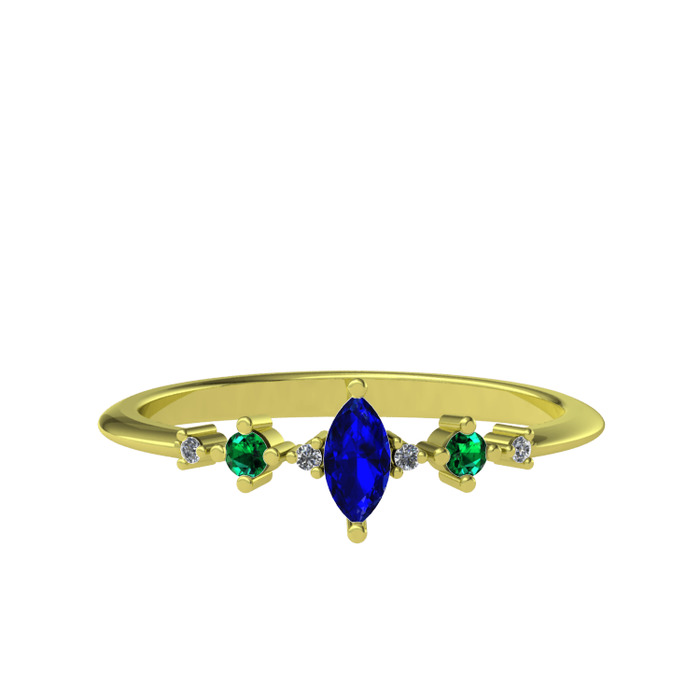 Lab safir, yeşil kuvars ve beyaz zirkon 925 ayar altın kaplama gümüş yüzük