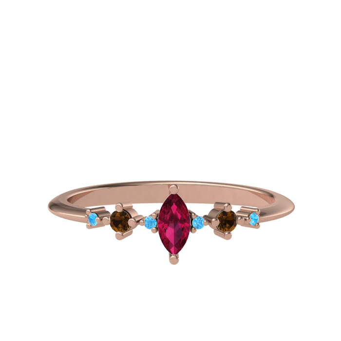Rodolit garnet, dumanlı kuvars ve akuamarin 18 ayar rose altın yüzük
