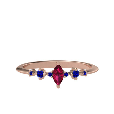Rodolit garnet ve lab safir 18 ayar rose altın yüzük