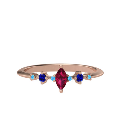 Rodolit garnet, lab safir ve akuamarin 925 ayar rose altın kaplama gümüş yüzük