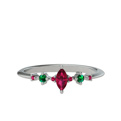 Rodolit garnet ve yeşil kuvars 14 ayar beyaz altın yüzük