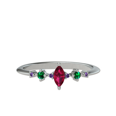 Rodolit garnet, yeşil kuvars ve ametist 18 ayar beyaz altın yüzük