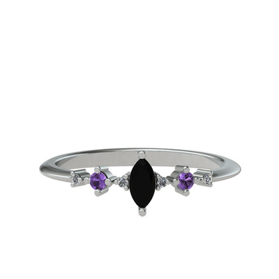 Siyah zirkon, ametist ve beyaz zirkon 18 ayar beyaz altın yüzük