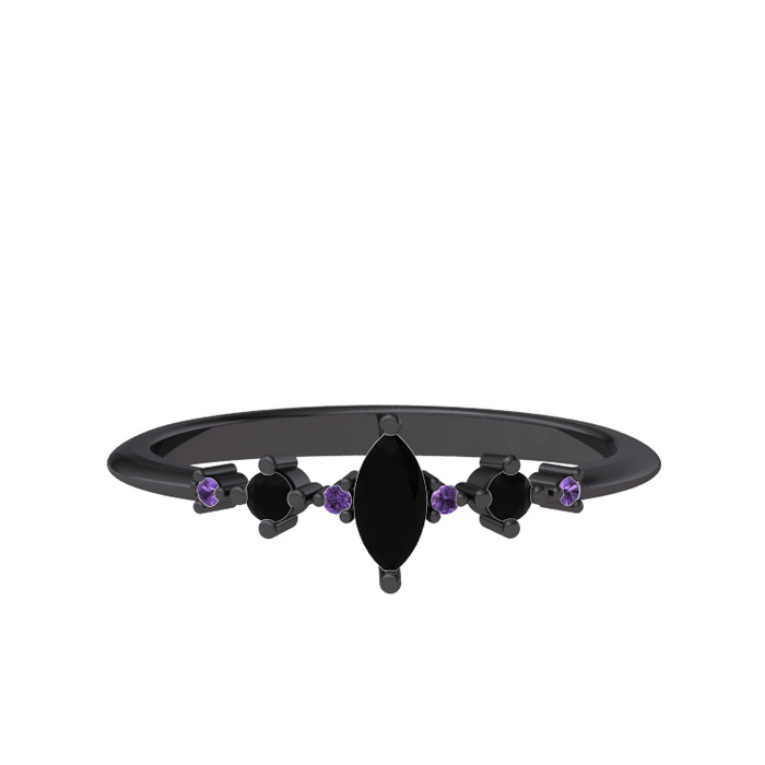 Siyah zirkon ve ametist 925 ayar siyah rodyum kaplama gümüş yüzük
