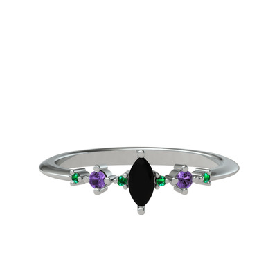 Siyah zirkon, ametist ve yeşil kuvars 925 ayar gümüş yüzük