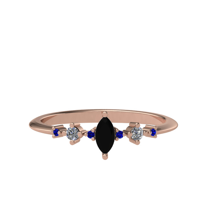 Siyah zirkon, beyaz zirkon ve lab safir 8 ayar rose altın yüzük