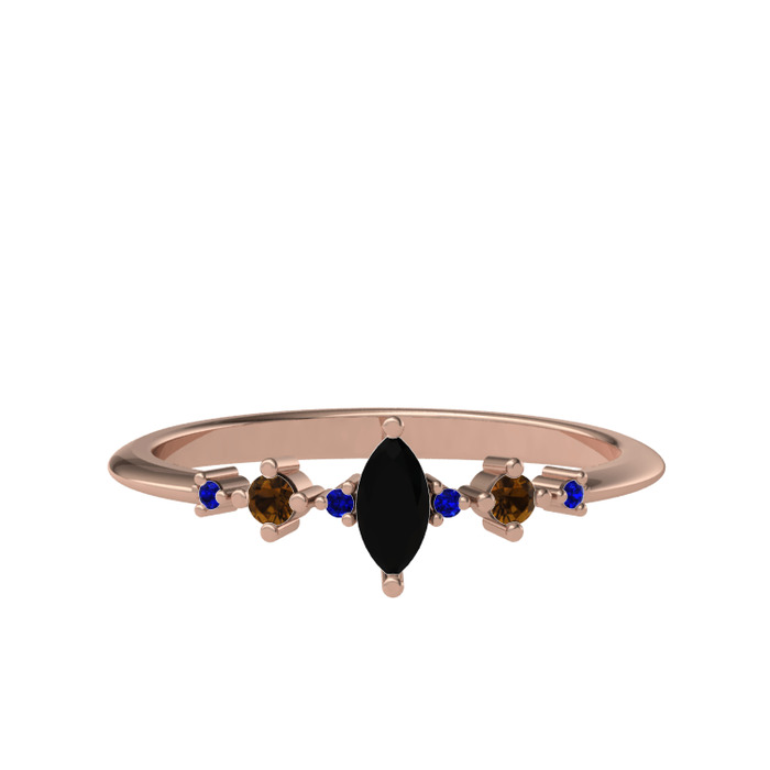 Siyah zirkon, dumanlı kuvars ve lab safir 925 ayar rose altın kaplama gümüş yüzük