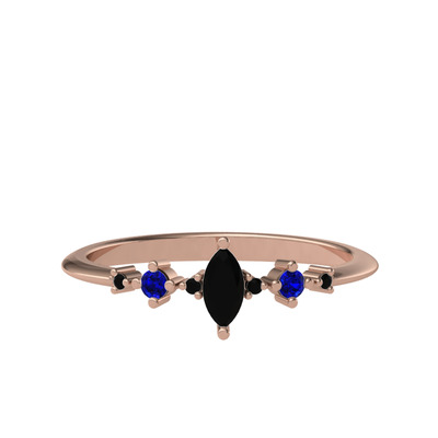 Siyah zirkon ve lab safir 8 ayar rose altın yüzük