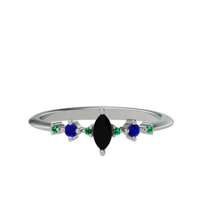 Siyah zirkon, lab safir ve yeşil kuvars 925 ayar gümüş yüzük