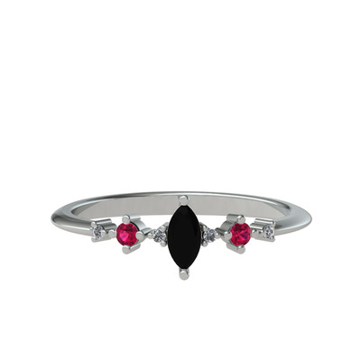 Siyah zirkon, rodolit garnet ve beyaz zirkon 8 ayar beyaz altın yüzük