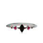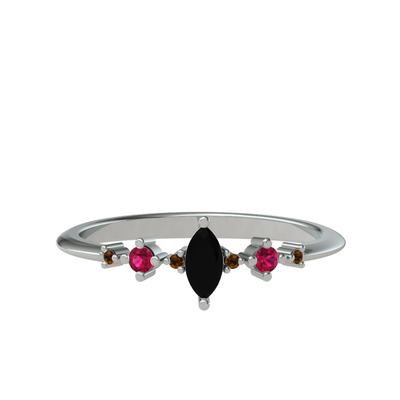 Siyah zirkon, rodolit garnet ve dumanlı kuvars 8 ayar beyaz altın yüzük