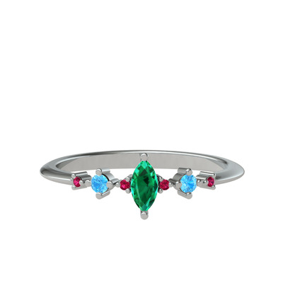 Yeşil kuvars, akuamarin ve rodolit garnet 14 ayar beyaz altın yüzük