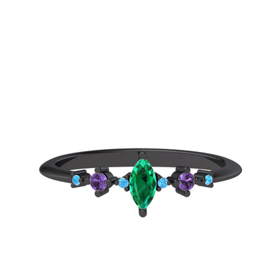 Yeşil kuvars, ametist ve akuamarin 925 ayar siyah rodyum kaplama gümüş yüzük