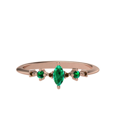 Yeşil kuvars ve dumanlı kuvars 8 ayar rose altın yüzük