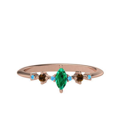 Yeşil kuvars, dumanlı kuvars ve akuamarin 18 ayar rose altın yüzük