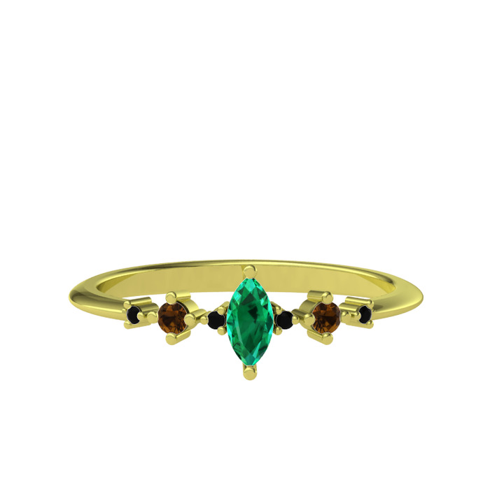 Yeşil kuvars, dumanlı kuvars ve siyah zirkon 925 ayar altın kaplama gümüş yüzük