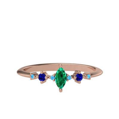 Yeşil kuvars, lab safir ve akuamarin 14 ayar rose altın yüzük