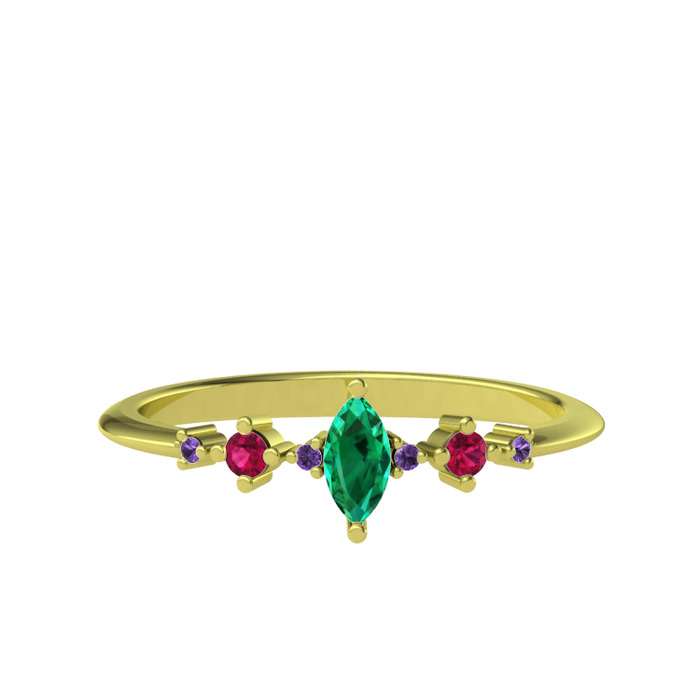 Yeşil kuvars, rodolit garnet ve ametist 8 ayar altın yüzük
