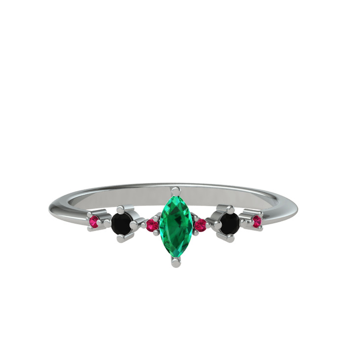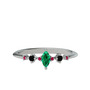 Yeşil kuvars, siyah zirkon ve rodolit garnet 14 ayar beyaz altın yüzük