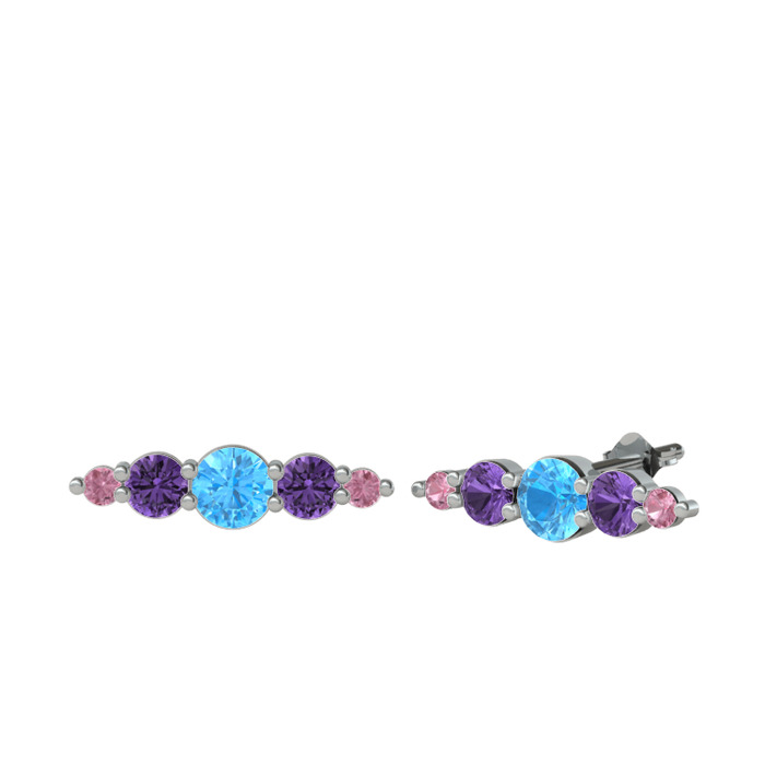 Akuamarin, ametist ve pembe kuvars 14 ayar beyaz altın küpe