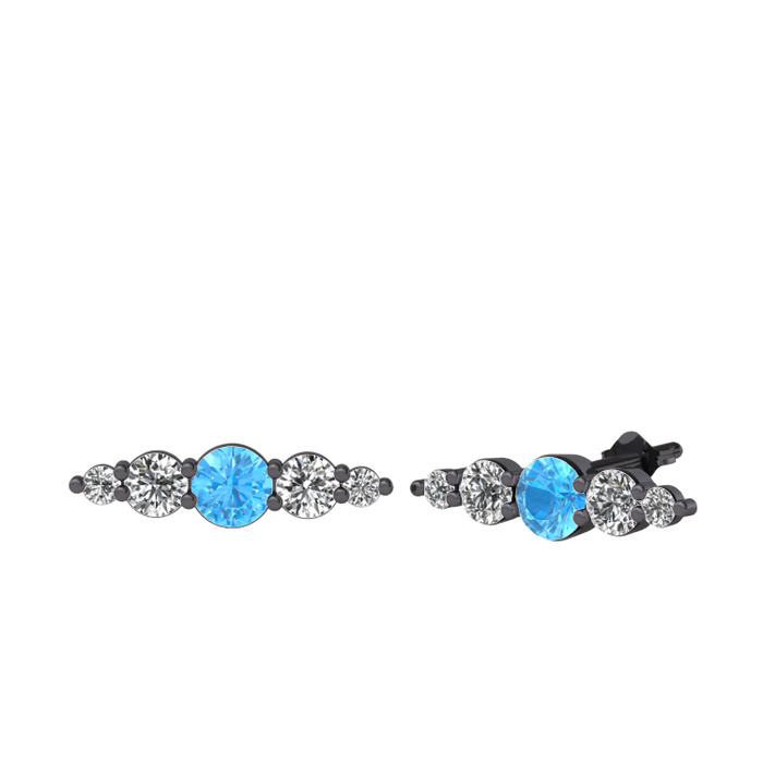 Akuamarin, beyaz zirkon ve swarovski 925 ayar siyah rodyum kaplama gümüş küpe