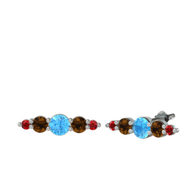 Akuamarin, dumanlı kuvars ve garnet 14 ayar beyaz altın küpe