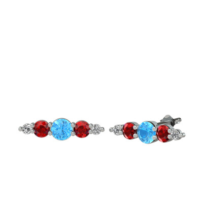Akuamarin, garnet ve beyaz zirkon 14 ayar beyaz altın küpe