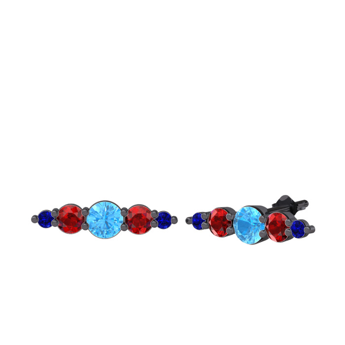 Akuamarin, garnet ve lab safir 925 ayar siyah rodyum kaplama gümüş küpe