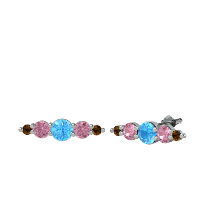Akuamarin, pembe kuvars ve dumanlı kuvars 8 ayar beyaz altın küpe