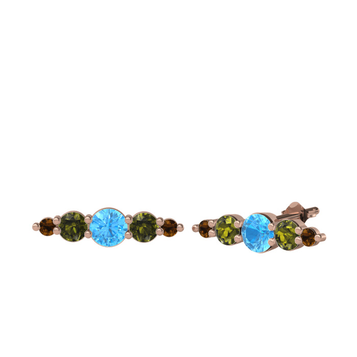 Akuamarin, peridot ve dumanlı kuvars 8 ayar rose altın küpe