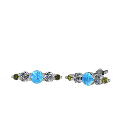 Akuamarin, pırlanta ve peridot 925 ayar gümüş küpe (0.12 karat)