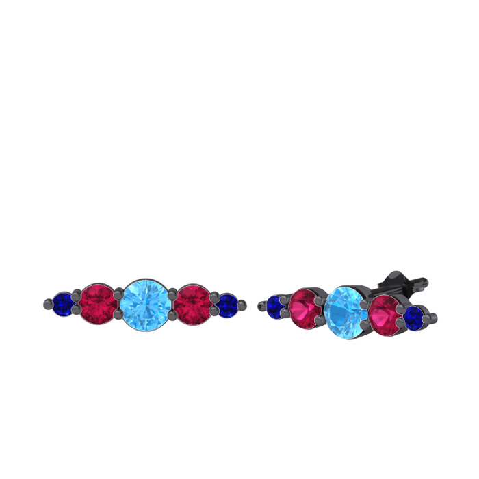 Akuamarin, rodolit garnet ve lab safir 925 ayar siyah rodyum kaplama gümüş küpe