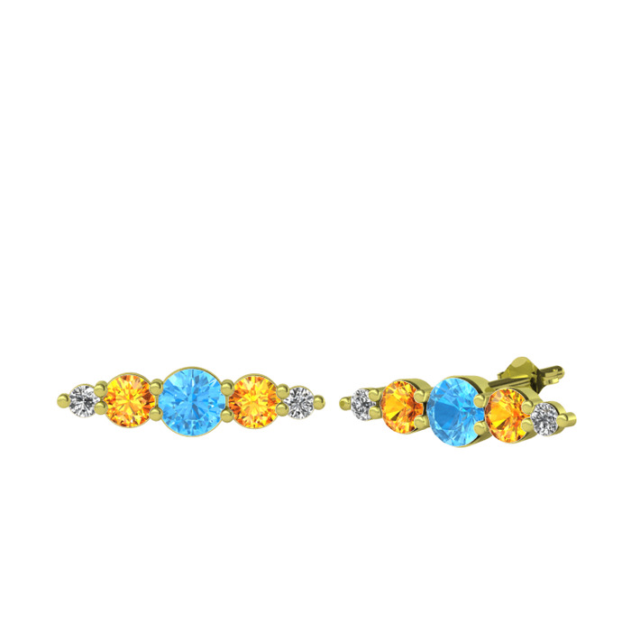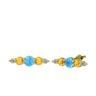 Akuamarin, sitrin ve swarovski 14 ayar altın küpe