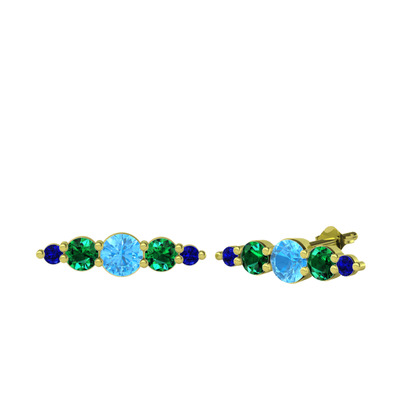 Akuamarin, yeşil kuvars ve lab safir 14 ayar altın küpe