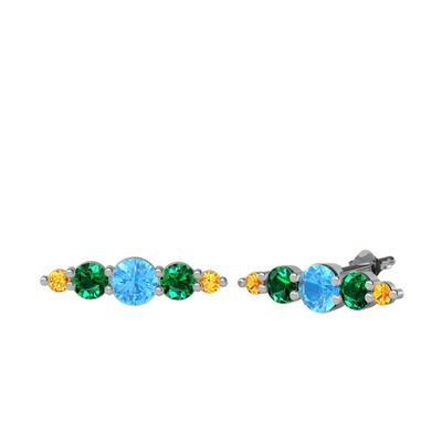 Akuamarin, yeşil kuvars ve sitrin 8 ayar beyaz altın küpe