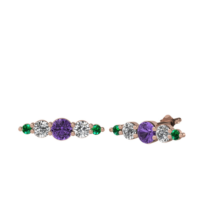 Ametist, beyaz zirkon ve yeşil kuvars 18 ayar rose altın küpe