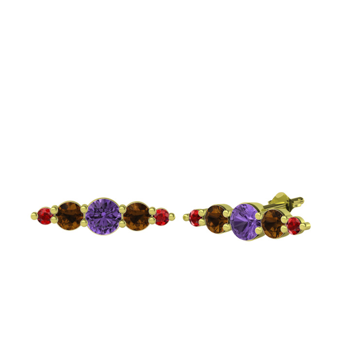 Ametist, dumanlı kuvars ve garnet 14 ayar altın küpe