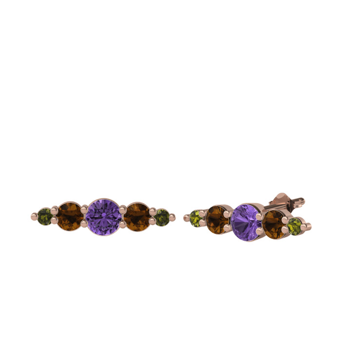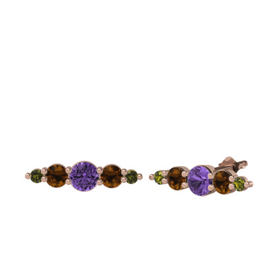 Ametist, dumanlı kuvars ve peridot 18 ayar rose altın küpe