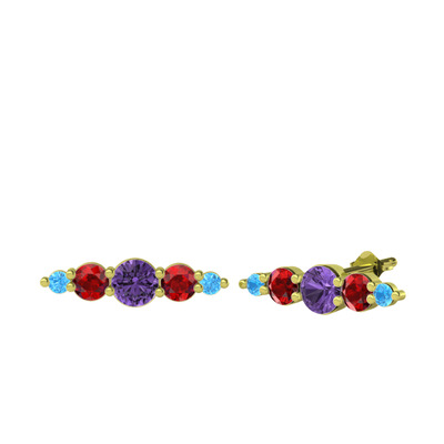 Ametist, garnet ve akuamarin 14 ayar altın küpe
