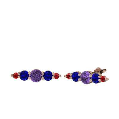 Ametist, lab safir ve garnet 14 ayar rose altın küpe