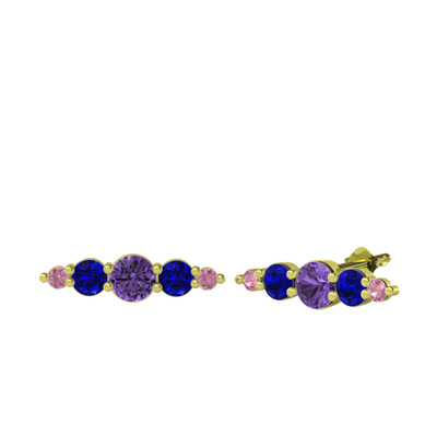Ametist, lab safir ve pembe kuvars 8 ayar altın küpe