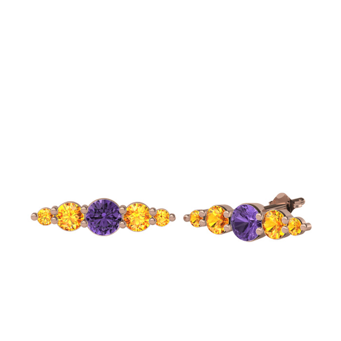 Ametist ve sitrin 18 ayar rose altın küpe